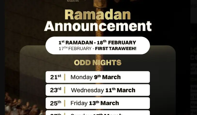 Ramadan 1447 start from 18th Feb 2026